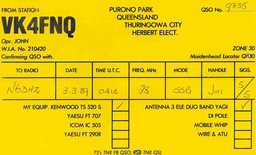 This was my first DX QSO. I had just purchased a used Kenwood TS-820 for my birthday.